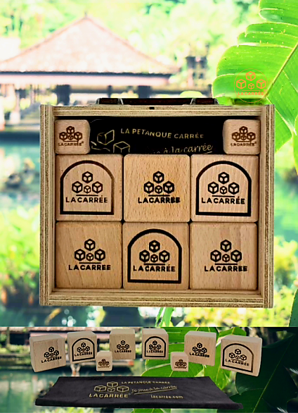 La pétanque carrée du jeu LACARRÉE :La règle du jeu imprimée au dos en Français et en Anglais la petite histoire Dômes LACARRÉE carrée-LACARRÉE :• 6 cubes en bois• 3 cubes 2 faces logos dômes LACARRÉE• 3 cubes 2 faces logos carrée carrée LACARRÉE• 2 titchons (cochonnets)• 1 chiffonnette microfibre• La règle du jeu imprimée au dos en Français et en Anglais• Dimension pour une prise en main optimaleCréer et Fabriquée en FRANCE Marque : La pétanque carrée, LACARRÉE